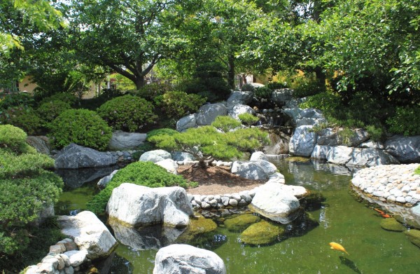锦鲤鱼池是日本花园中另一个十分常见的元素。它们代表湖泊或海洋,给花园带来了色彩与生命。如下图所示,在休闲区会有大型的锦鲤鱼池,自家后院也容纳得下小的鱼池。